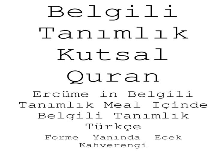 Belgili Tanımlık Kutsal Quran